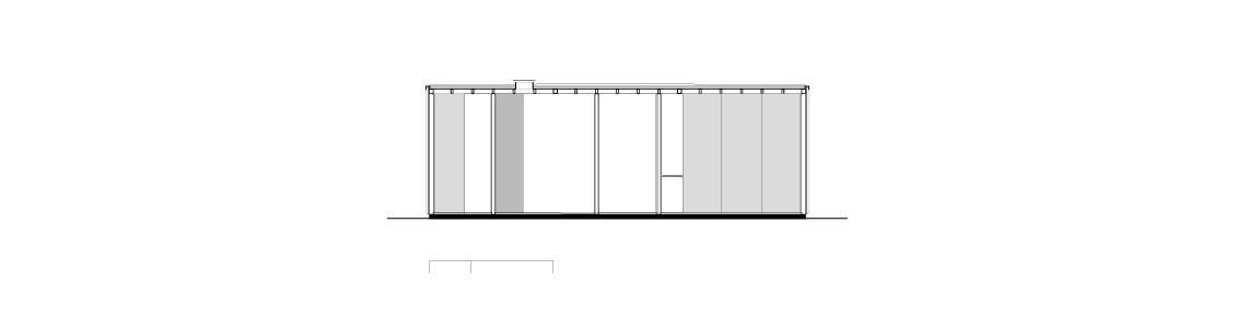 O conjunto ganha ressignificação a cada nova disposição dos espaços. Uma planta flexível que permite variações de configuração, desde ambientes integrados até espaços mais compartimentados. O bloco de serviços tem fechamento em telha metálica termoacústica com aberturas para iluminação natural. Já os demais ambientes têm fechamento em vidro no perímetro da construção, definindo assim, o aspecto do conjunto – um pequeno pavilhão.